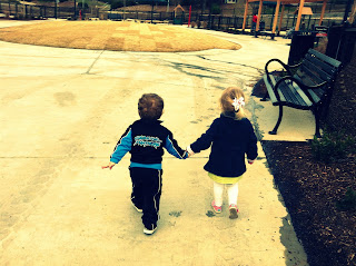 We have been to the new and improved Pullen Park twice in the past month. Once with Adelyn's 'boyfriend' and then again with her Daddy. She had a blast exploring with Everette. The seesawed, rode the train, climbed and ran around. When she went with Daniel, I came for a few minutes on my lunch break and got to watch her ride the boats and carousel. Crazy because I remember riding these when I was little.